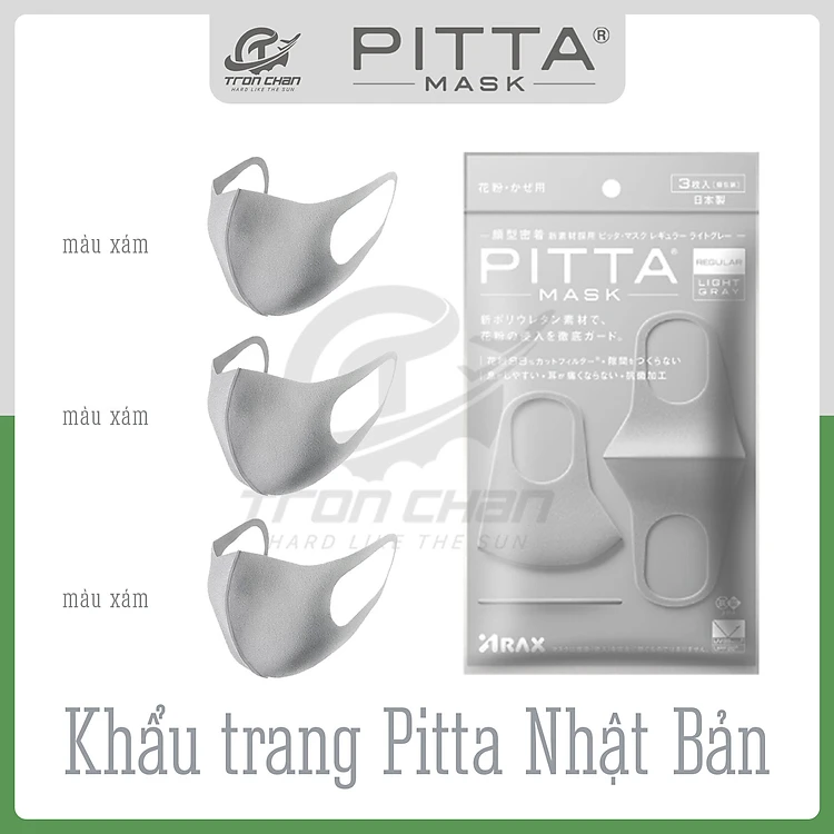 Khẩu Trang Pitta Màu Xám Trắng (Gói 3 cái)