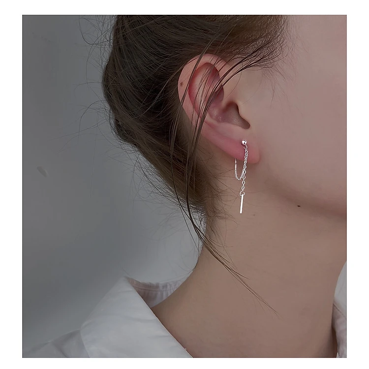 Bông tai xích mỏng thả thanh Titan chữ nhật năng động thu hút
