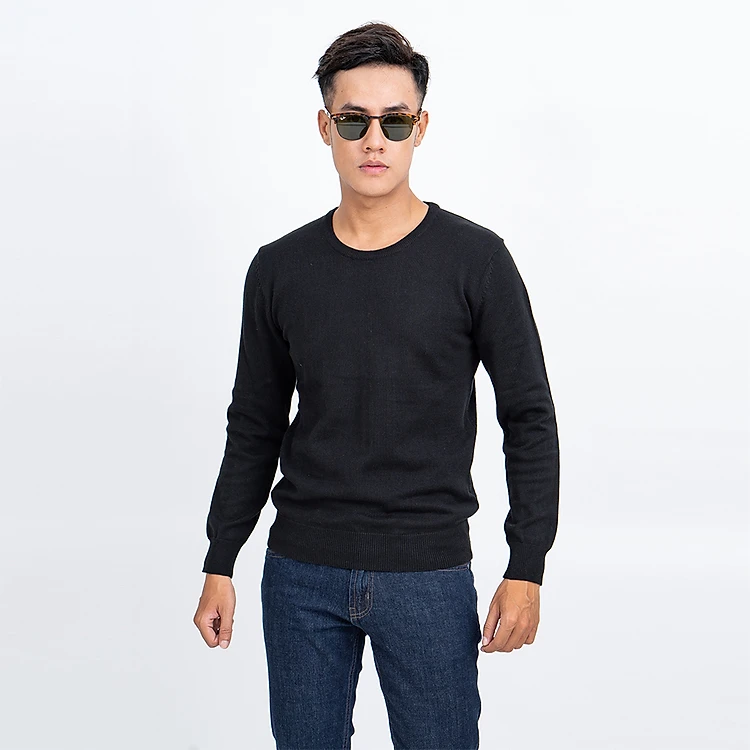 Áo len nam dài tay cổ tròn màu đen NOVELTY 180575T