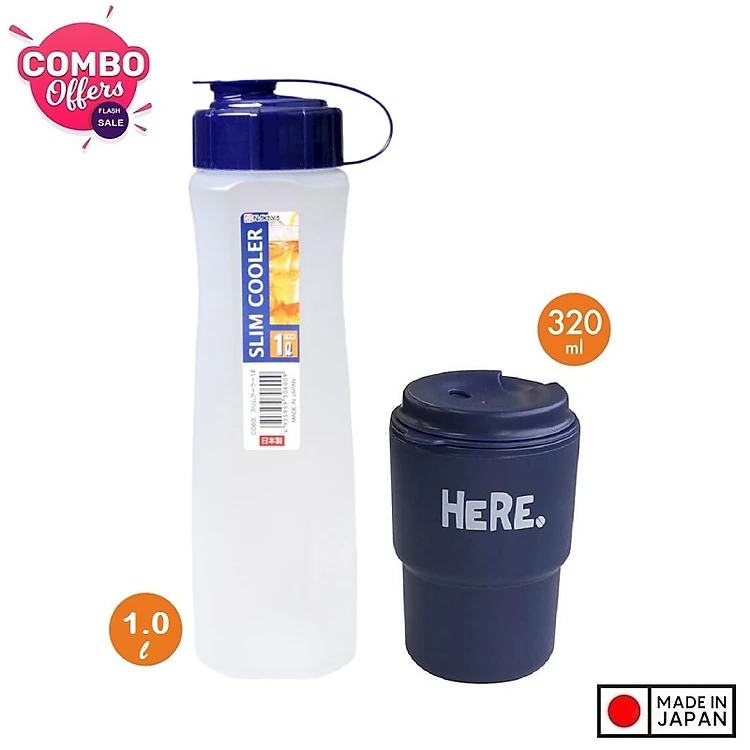 Bình đựng nước 1 lít kèm cốc uống nước nắp xoay 320ml có lỗ cắm ống hút