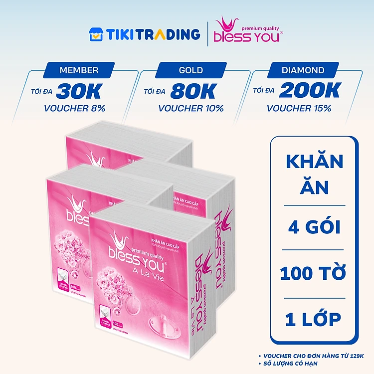 Lốc 4 Gói Khăn Ăn Napkin Bless You Alavie 33x33