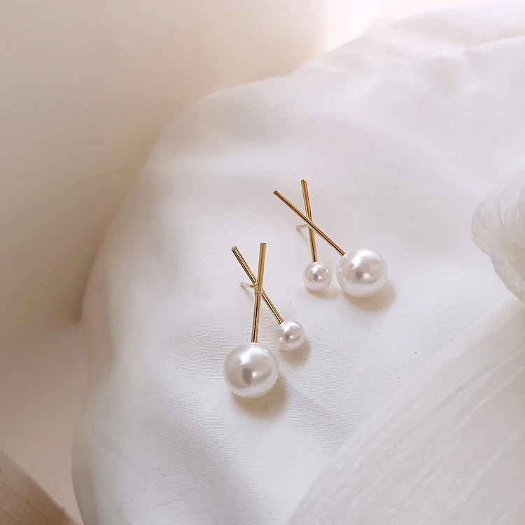Khuyên tai ngọc trai hình chữ x đơn giản khí chất Hàn Quốc