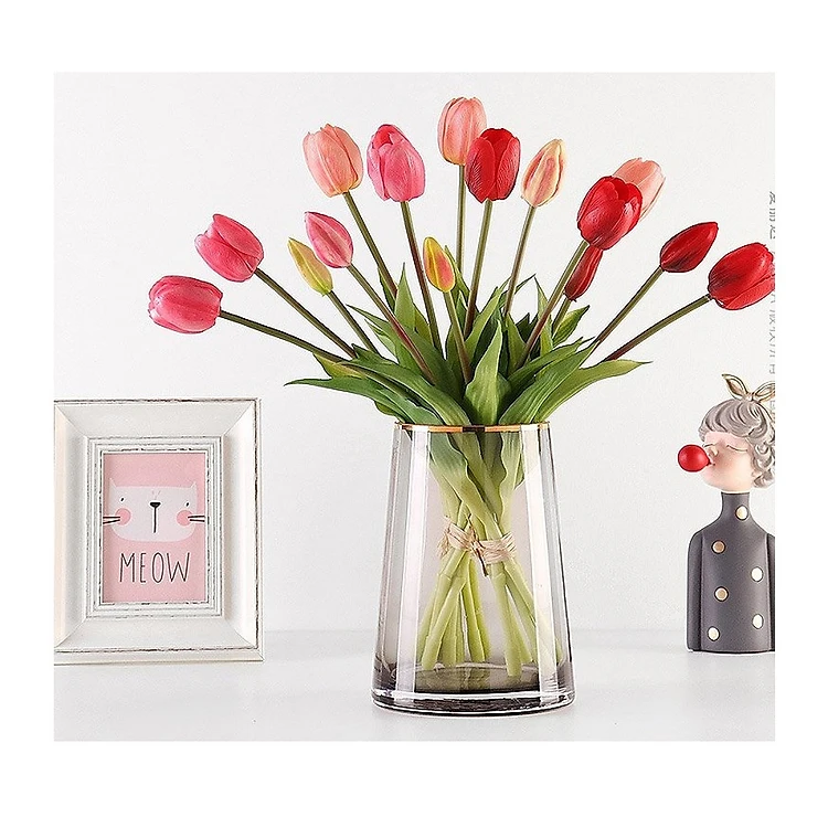 Hoa giả, hoa tulip silicon trang trí phòng khách, decor bàn làm việc, kệ tủ, cửa hàng, màu sắc tự nhiên giống thật AZ10
