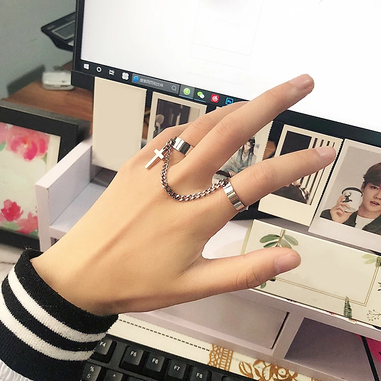 Nhẫn nam nữ hình chữ thập phong cách hip hop thời trang Hàn Quốc