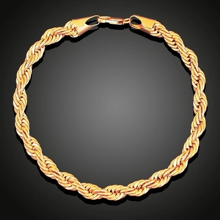 Bộ Trang sức mạ vàng 18K, Phong cách châu Âu, Kiểu xoắn, cỡ dây 3li, kèm hộp đựng lót nhung gấm