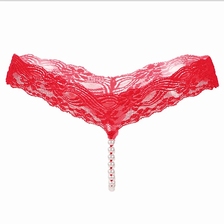 Quần lót nữ lọt khe ren xẻ đáy hạt ngọc - Đỏ