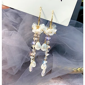 Bông tai chuỗi ngọc trai pha lê sang trọng