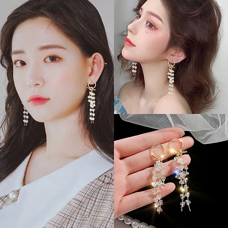Bông tai pha lê dài sang trọng dự tiệc