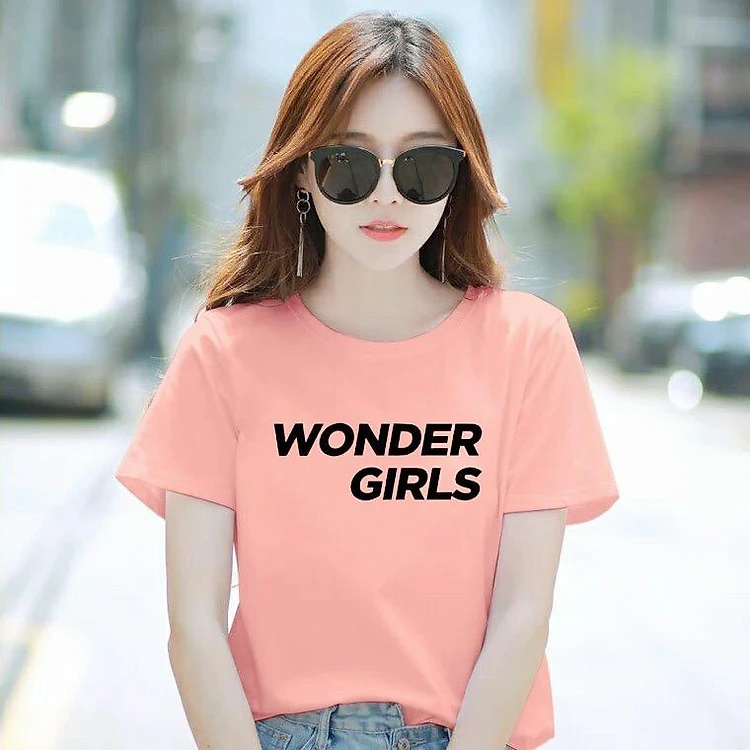 Áo thun nữ cổ tròn form rộng in chữ Wonder Girls thun cotton 4 chiều ( ANU021 )