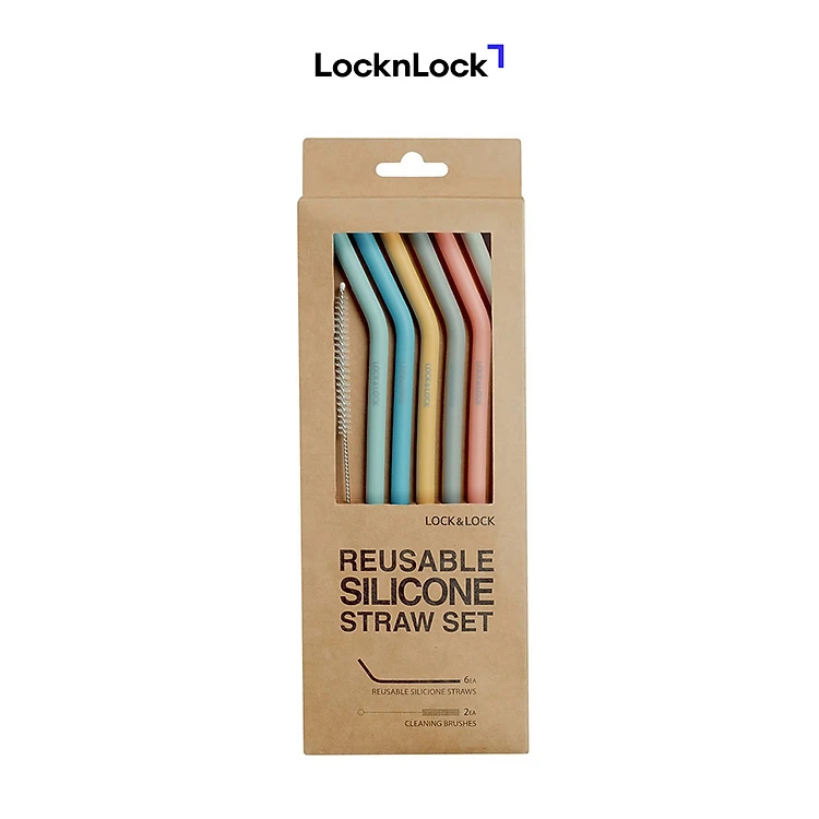 Bộ 6 Ống Hút Silicone Có Thể Tái Sử Dụng Kèm 2 Cọ Rửa Lock&Lock TLL080 ( 250 x 78 mm)
