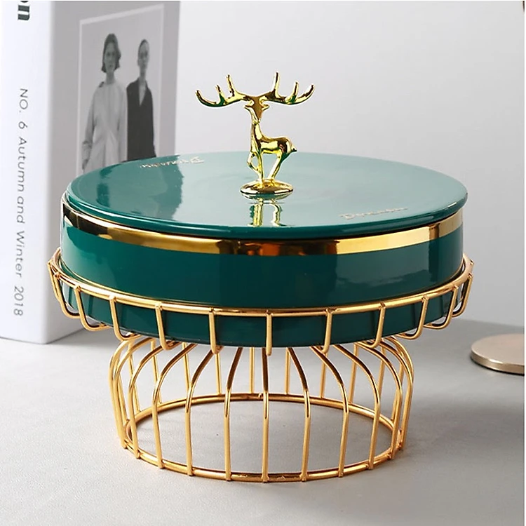 Khay đựng mứt nắp hươu vàng kèm kệ