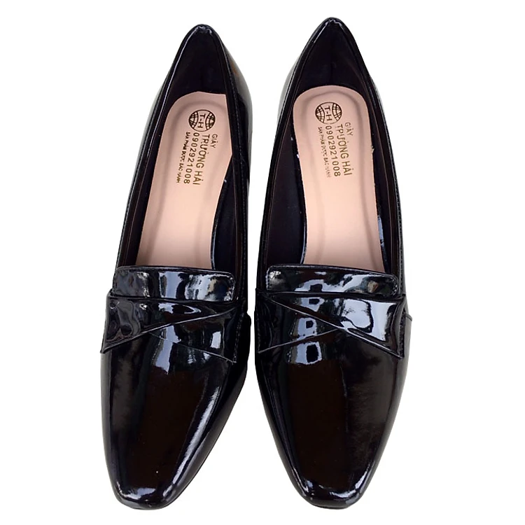 Giày cao gót 7cm Trường Hải gót to da bóng màu đen thời trang cao cấp CG01280