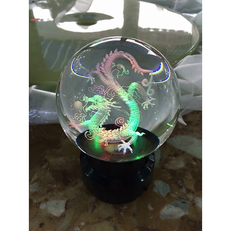 Quả cầu Pha Lê phong thủy chạm âm 6D khắc hình Rồng - Đường kính 8cm