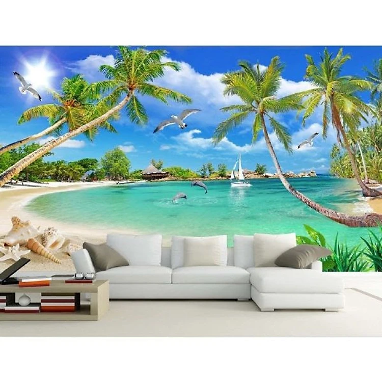 Tranh dán tường 3d cản bờ biển - tranh dán phòng khách - phòng ngủ - hành lang DD107