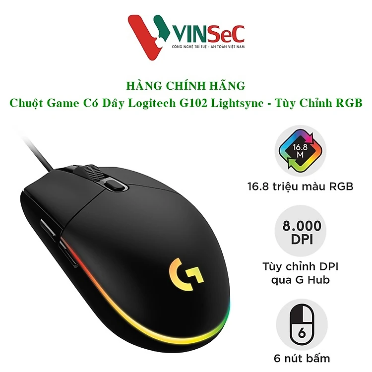 Chuột chơi game có dây LOGITECH G102 GEN2 RGB Black - Hàng Chính Hãng