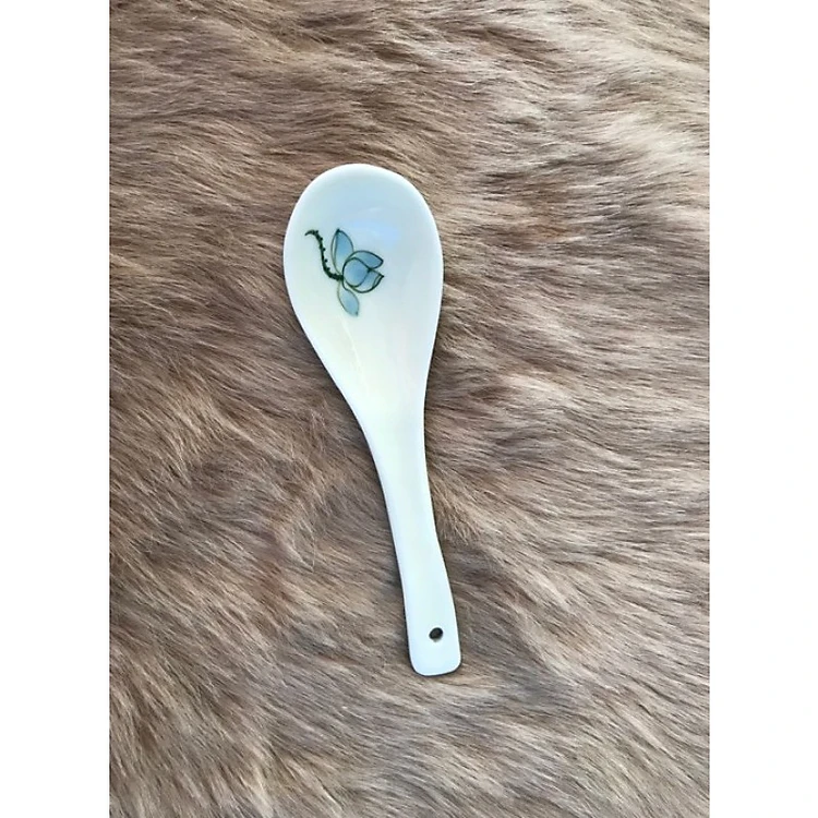 Combo 6 thìa sứ Bát Tràng vẽ sen xanh