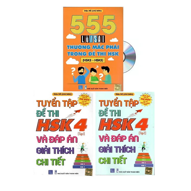 Combo 3 sách Bộ đề tuyển tập đề thi năng lực Hán Ngữ HSK 4 và đáp án giải thích chi tiết +555 Lỗi sai thường mắc phải trong đề thi HSK (HSK 3 đến HSK 5)+ DVD tài liệu