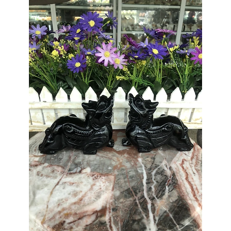 Cặp Tỳ Hưu phong thủy đá thạch anh đen - Dài 13 cm