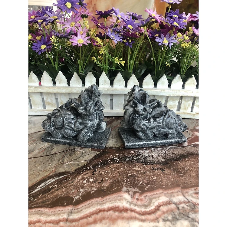 Cặp Tỳ Hưu phong thủy đá cẩm thạch vân đen có đế - Dài 10 cm