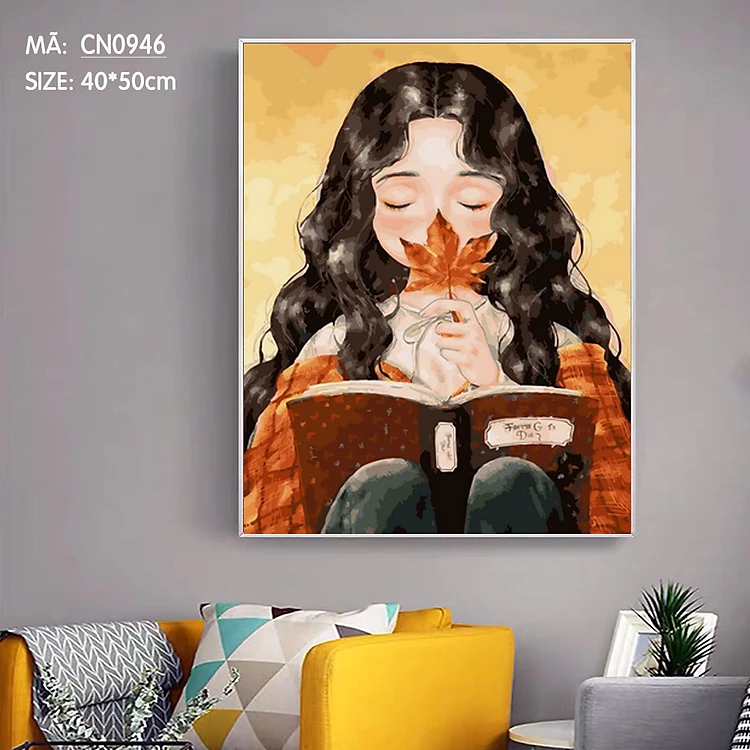Tranh tô màu theo số sơn dầu số hóa Tranh cô bé ngồi đọc sách CN0946