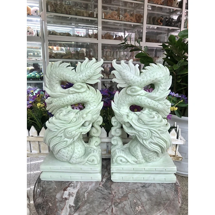 Cặp Rồng đứng phong thủy đá cẩm thạch trắng xanh - Cao 30 cm