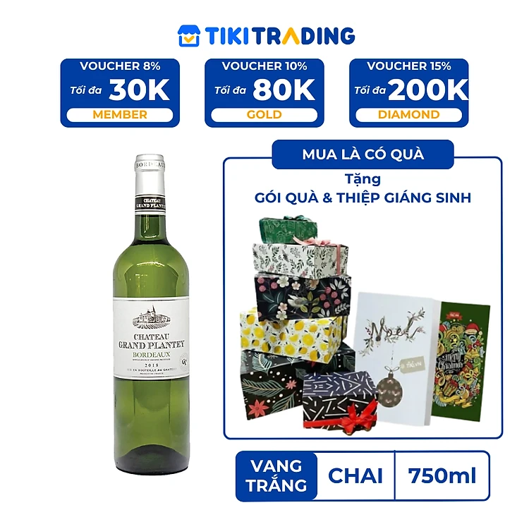 Rượu vang trắng Chateau Grand Plantey 750ml 11% - 13% Không hộp