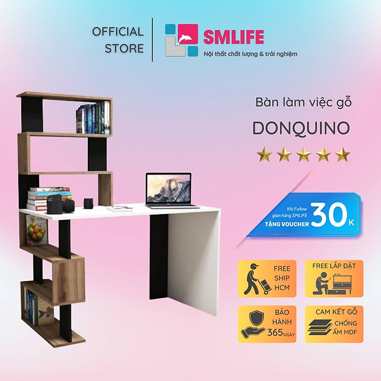 Bàn vi tính liền giá sách thiết kế nhỏ gọn SMLIFE Donquino