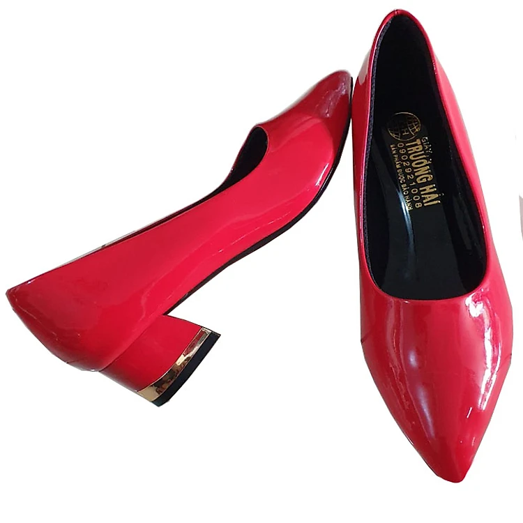 Giày cao gót bít mũi đế vuông 3cm Trường Hải da bóng màu đỏ thời trang cao cấp CG0121
