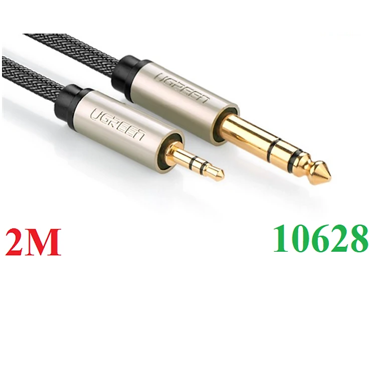 Cáp 3.5mm TRS ra 6.35mm TS Stereo Pro Audio mạ vàng 24K 2M màu xám đen Ugreen 127AT10628AV Hàng chính hãng