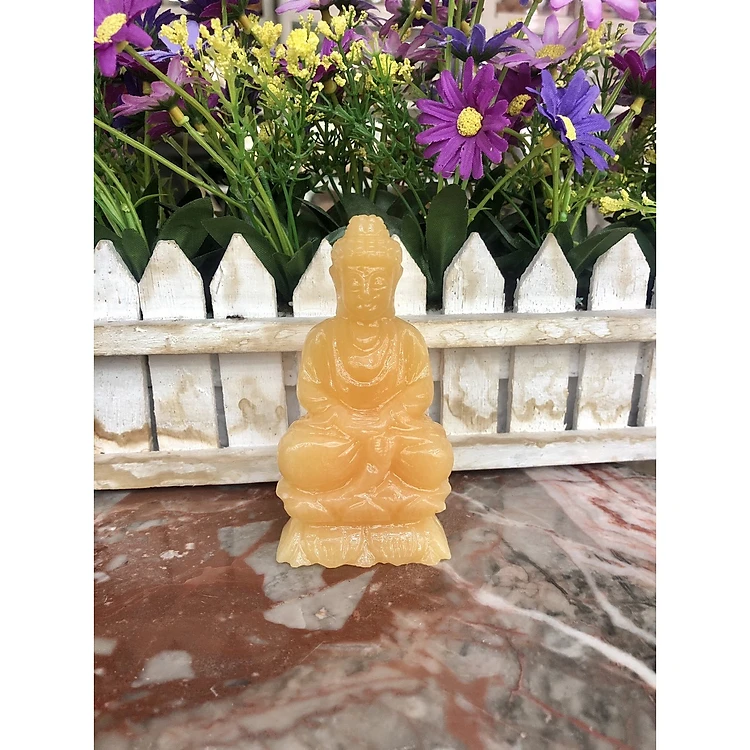 Tượng Phật A Di Đà ngồi đài sen trang trí xe ôtô xe hơi, bàn thờ đá ngọc hoàng long - Cao 10cm
