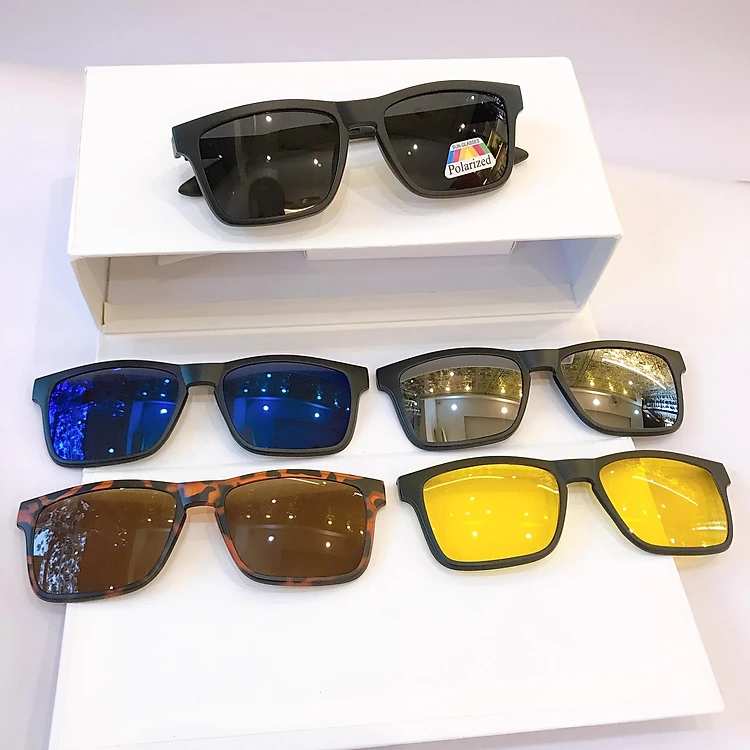 Bộ Kính cận râm 5 tròng râm đa năng Mắt vuông Hàn Quốc