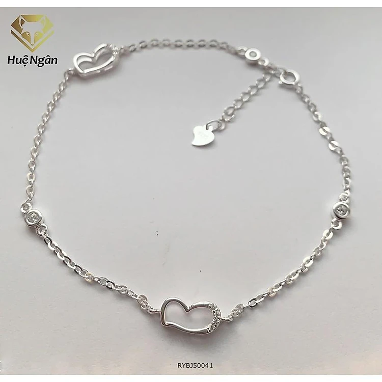 Lắc chân bạc Ý 925 Huệ Ngân - Tim xinh đính đá RYBJ50041