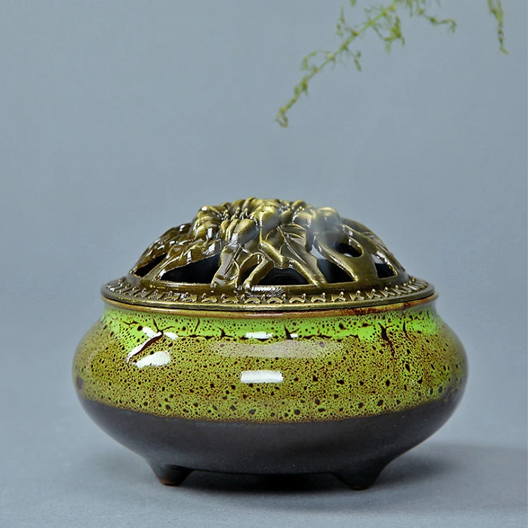 Chén xông trầm 05 xanh lá chất liệu gốm cao cấp