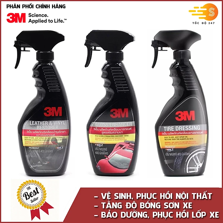 Combo 3 chai xịt bảo dưỡng nội thất 39040LT, bảo dưỡng lốp 39042LT và tăng độ bóng sơn 39034LT 3M