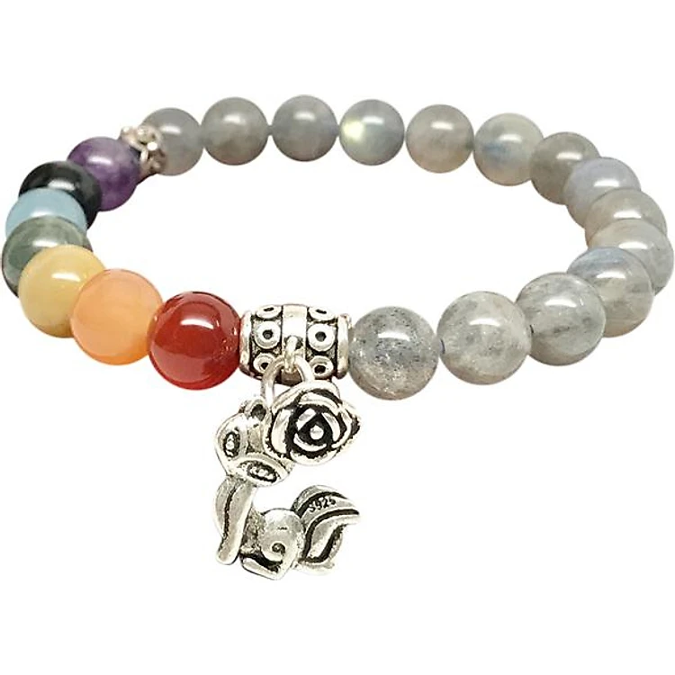 Vòng Tay Xà Cừ Xám Mix Đá 7 Sắc Và Charm Hồ Ly Bạc Ngọc Quý Gemstones VPT037