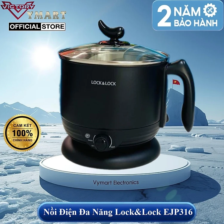 Nồi Điện Đa Năng Lock&Lock EJP316BLK (1.2 Lít), nắp kính cường lực, lòng nồi inox 304,an toàn sức khỏe - Hàng Chính Hãng