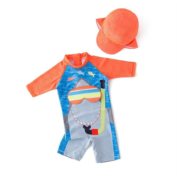 Bộ đồ bơi kèm mũ cá mập đeo kính bé trai 3-7 tuổi