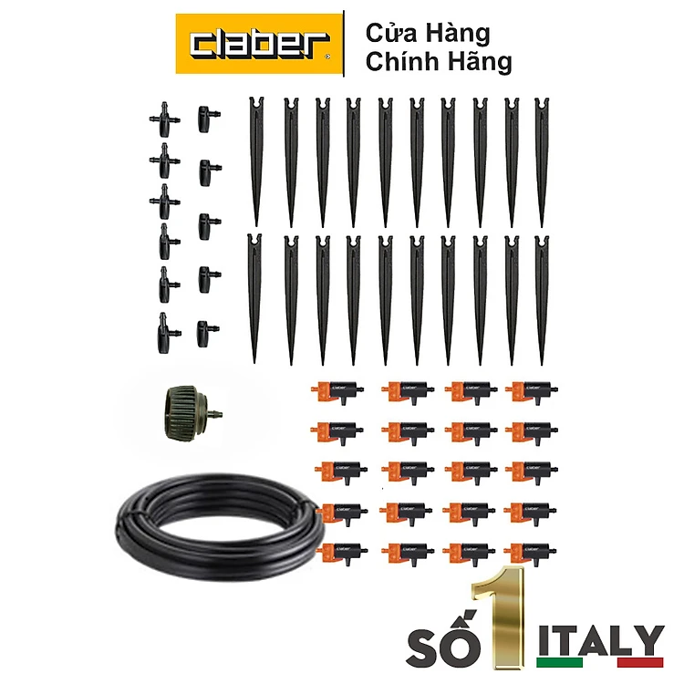 Bộ Tưới Nhỏ Giọt Cơ Bản Claber Drip Starter Kit, dùng cho 20 chậu cây, đầu tưới nhỏ giọt điều chỉnh lưu lượng 0-6 l/h DRIPKIT20TC Claber