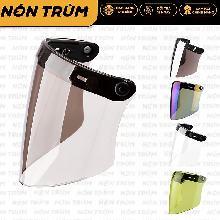Kính thẳng gắn nón bảo hiểm 3/4 Royal có 3 nút bấm