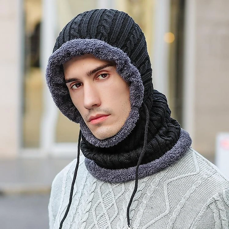 Mũ len nam nữ trùm đầu liền khăn cổ lót nỉ ấm áp mùa đông chống gió lạnh - mu len nam nu lot ni trum co