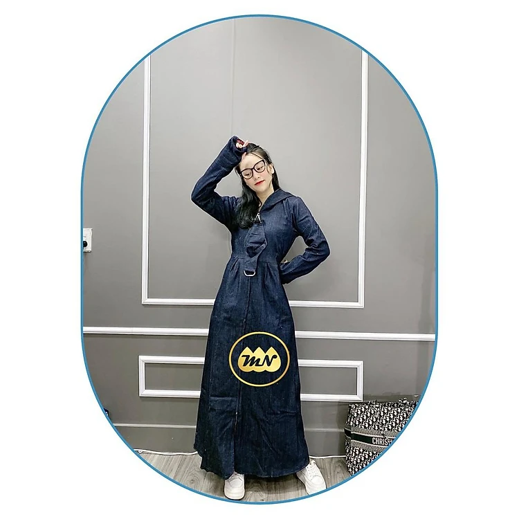 Áo chống nắng toàn thân nữ vải bò Jean 2 lớp dài kín chân - ao chong nang toan than nu vai bo 2 lop