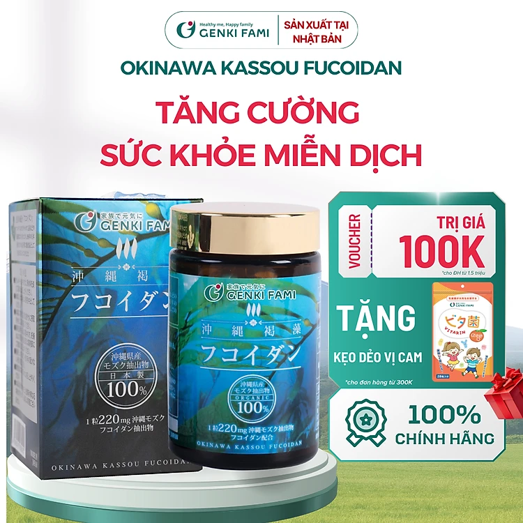 Fucoidan Genki Fami Nhật Bản, Tăng Cường Đề Kháng, Miễn Dịch, Hỗ Trợ Ngăn Ngừa Ung Bướu Hộp 150 viên