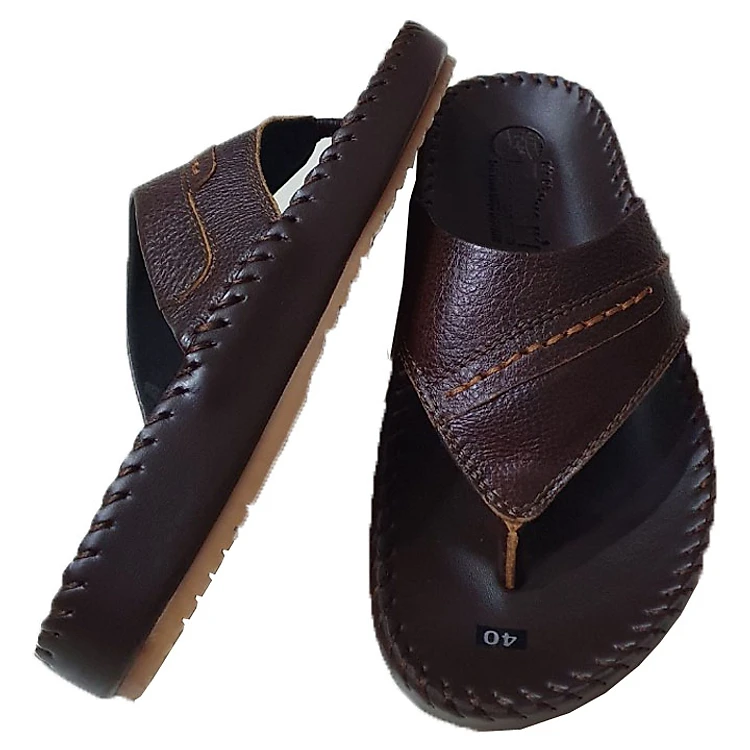 Dép nam xó ngón nâu da bò may viền chính hãng Trường Hải XN1004