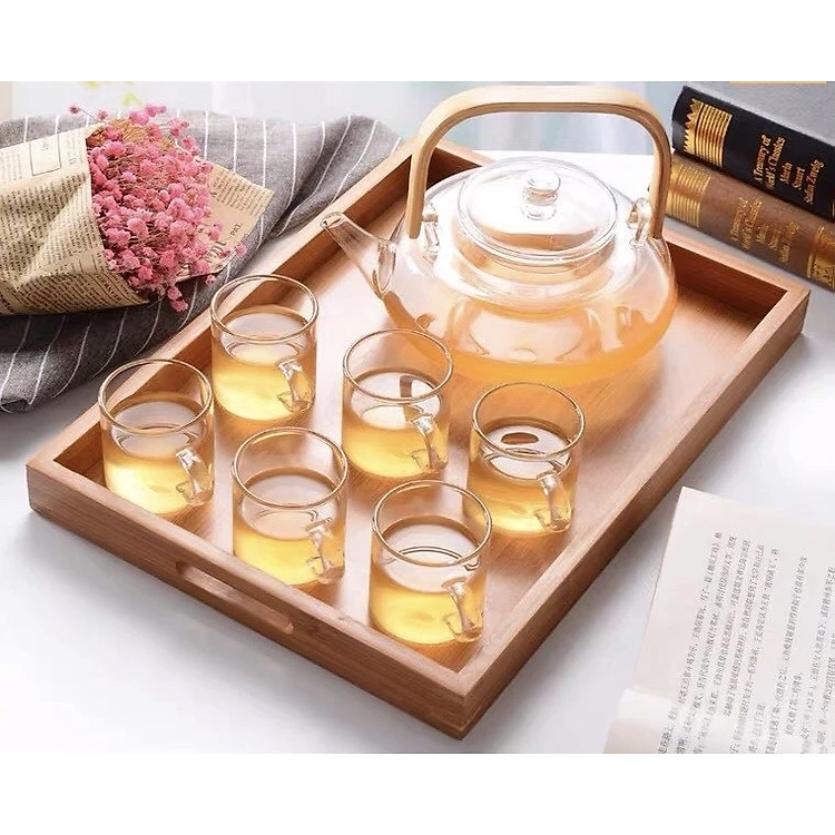 BỘ ẤM CHÉN PHA TRÀ THỦY TINH TAY GỖ KÈM KHAY TRE - ANTH680