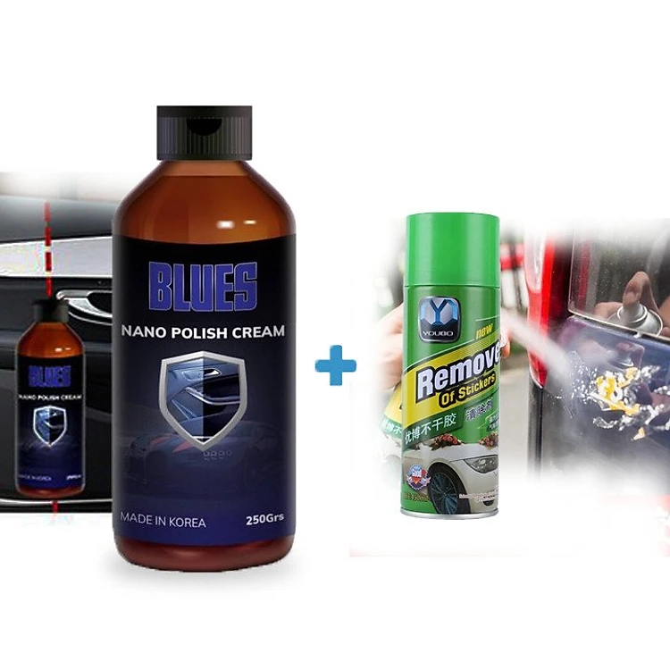 Chai xịt Blues Nano Polish Cream Korea tặng chai Tẩy keo,decal, chuyên phục hồi làm bóng nhựa xe - Nhựa nhám, ghế da, balo da,...