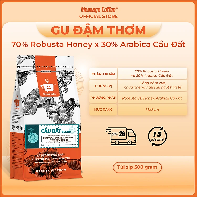 Cà phê Cầu Đất Blend Cao Cấp Nguyên Chất Rang Mộc 100% Kết Hợp Giữa Arabica Cầu Đất Và Robusta Honey Cho Vị Đắng Đầm Thơm Ngọt Hậu - Message Coffee