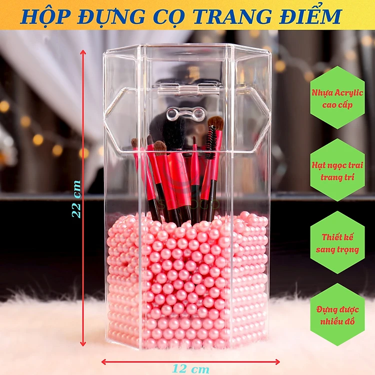 Hộp Đựng Cọ Trang Điểm Ngọc Trai Acrylic- Hộp Cọ Trong Suốt Sang Trọng- Lọ Đựng Cọ Kèm Hạt Trang Trí 3D- Hộp Makeup Brush Holder Cao Cấp- Hộp Đựng Cọ Trang Điểm Hạt Ngọc Tinh Tế