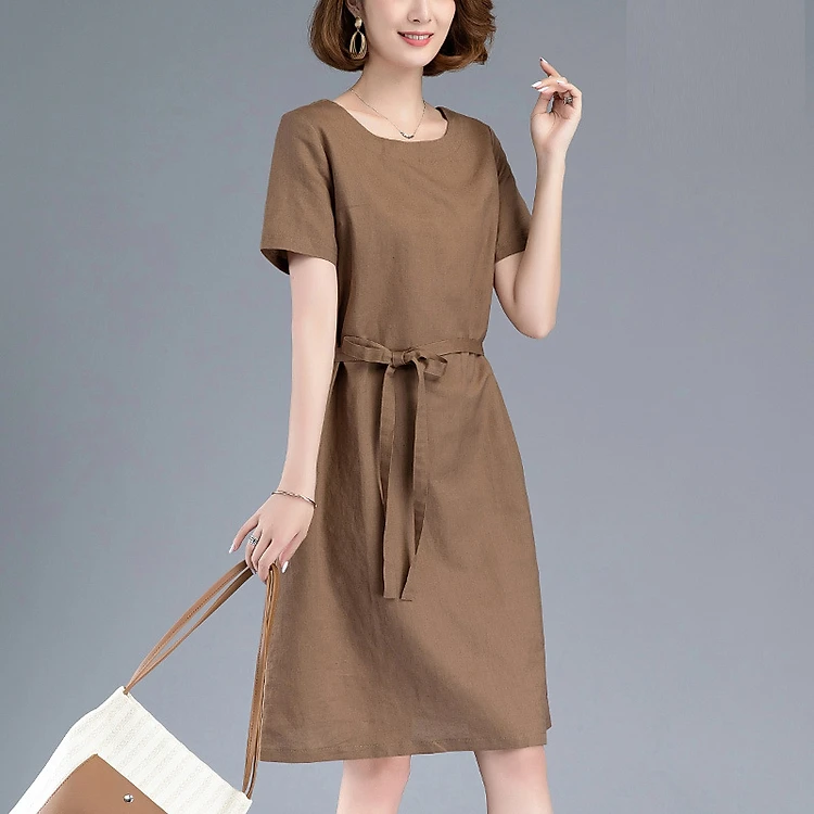 Đầm suông trung niên hoa lá, đầm form rộng da149