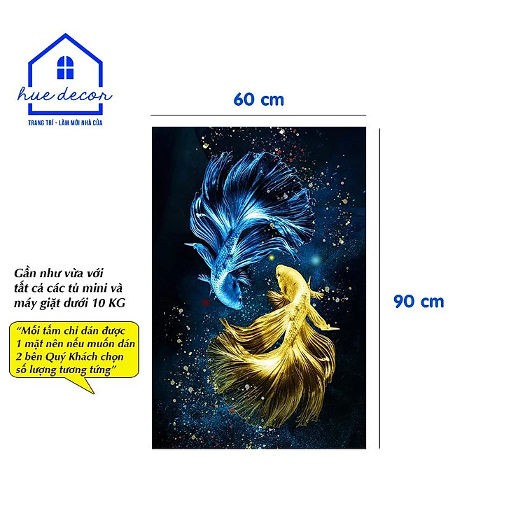 Decal dán tủ lạnh mẫu cá tiên - Chất liệu chống nước, phù hợp với mọi loại tủ