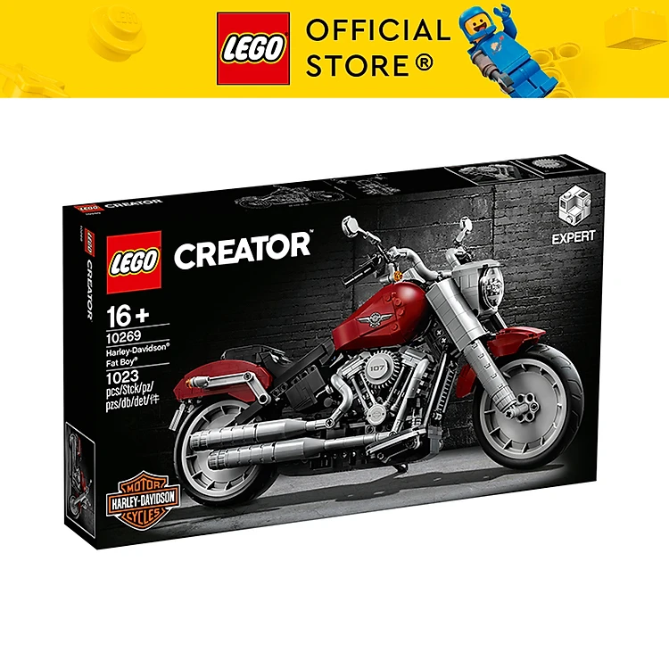 Khám phá những chi tiết tinh xảo của mô hình mang tính biểu tượng với LEGO Creator Expert Xe Mô Tô Harley-Davidson Fat Boy (10269). Được phát triển với sự hợp tác của Harley-Davidson, chiếc mô tô LEGO có nhiều chi tiết này thể hiện sự kỳ diệu của cỗ máy đời thực, từ bánh xe Lakester đĩa đặc với lốp chắc chắn đến bình xăng hình giọt nước có in logo và đồng hồ tốc độ. Các tính năng khác bao gồm động cơ Milwaukee-Eight với piston chuyển động, ống xả kép, tay lái, bàn đạp sang số có thể di chuyển và cần phanh, chân chống và giá đỡ màn hình chắc chắn. Được hoàn thiện với tông màu đỏ sẫm và đen, mẫu trưng bày tuyệt vời này trở thành một trung tâm thu hút thực sự mang tính biểu tượng cho ngôi nhà hoặc văn phòng. Bộ LEGO cao cấp này mang đến trải nghiệm lắp ráp phong phú và bổ ích.